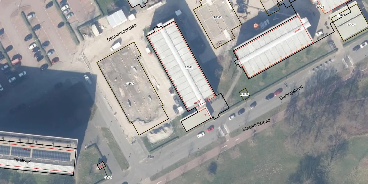 Het perceel waarop Darlingstraat 121 staat heeft een oppervlakte van 1040 m². Dit is een zeer groot perceel. De perceeloppervlakte wordt geregistreerd door het Kadaster. Gedetailleerde informatie over de maten van dit perceel kunt u vinden in het rapport Kadastrale kaart met maatvoering van Darlingstraat 121.
