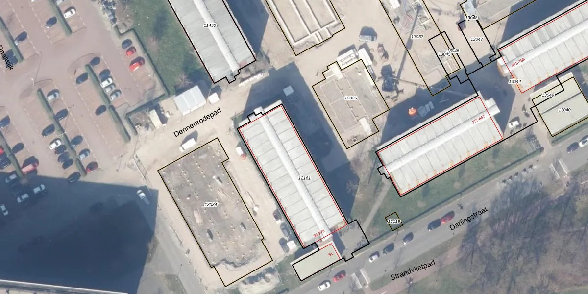 Het perceel waarop Darlingstraat 151 staat heeft een oppervlakte van 1040 m². Dit is een zeer groot perceel. De perceeloppervlakte wordt geregistreerd door het Kadaster. Gedetailleerde informatie over de maten van dit perceel kunt u vinden in het rapport Kadastrale kaart met maatvoering van Darlingstraat 151.