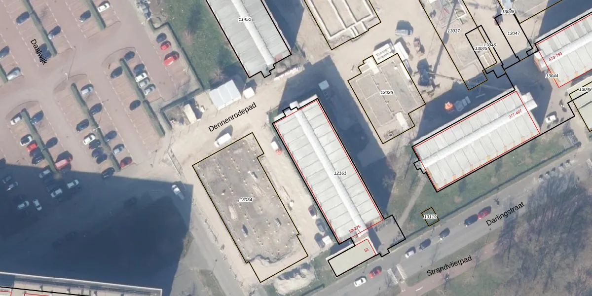 Het perceel waarop Darlingstraat 153 staat heeft een oppervlakte van 1040 m². Dit is een zeer groot perceel. De perceeloppervlakte wordt geregistreerd door het Kadaster. Gedetailleerde informatie over de maten van dit perceel kunt u vinden in het rapport Kadastrale kaart met maatvoering van Darlingstraat 153.