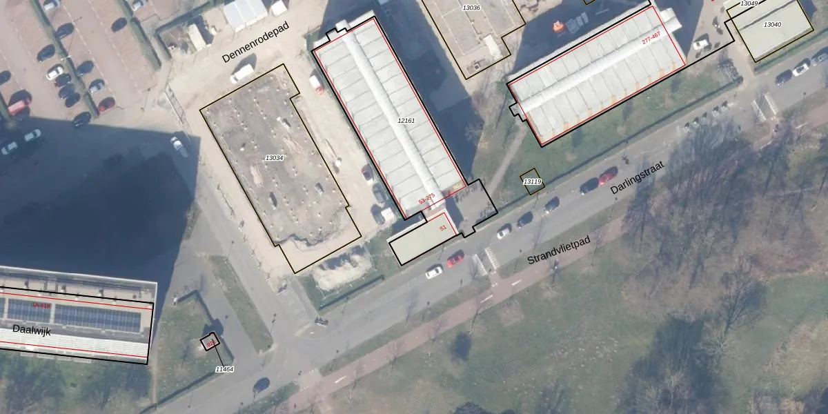 Het perceel waarop Darlingstraat 165 staat heeft een oppervlakte van 1040 m². Dit is een zeer groot perceel. De perceeloppervlakte wordt geregistreerd door het Kadaster. Gedetailleerde informatie over de maten van dit perceel kunt u vinden in het rapport Kadastrale kaart met maatvoering van Darlingstraat 165.