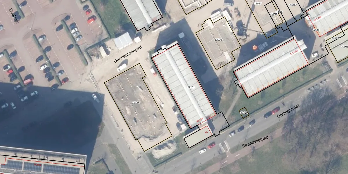 Het perceel waarop Darlingstraat 197 staat heeft een oppervlakte van 1040 m². Dit is een zeer groot perceel. De perceeloppervlakte wordt geregistreerd door het Kadaster. Gedetailleerde informatie over de maten van dit perceel kunt u vinden in het rapport Kadastrale kaart met maatvoering van Darlingstraat 197.