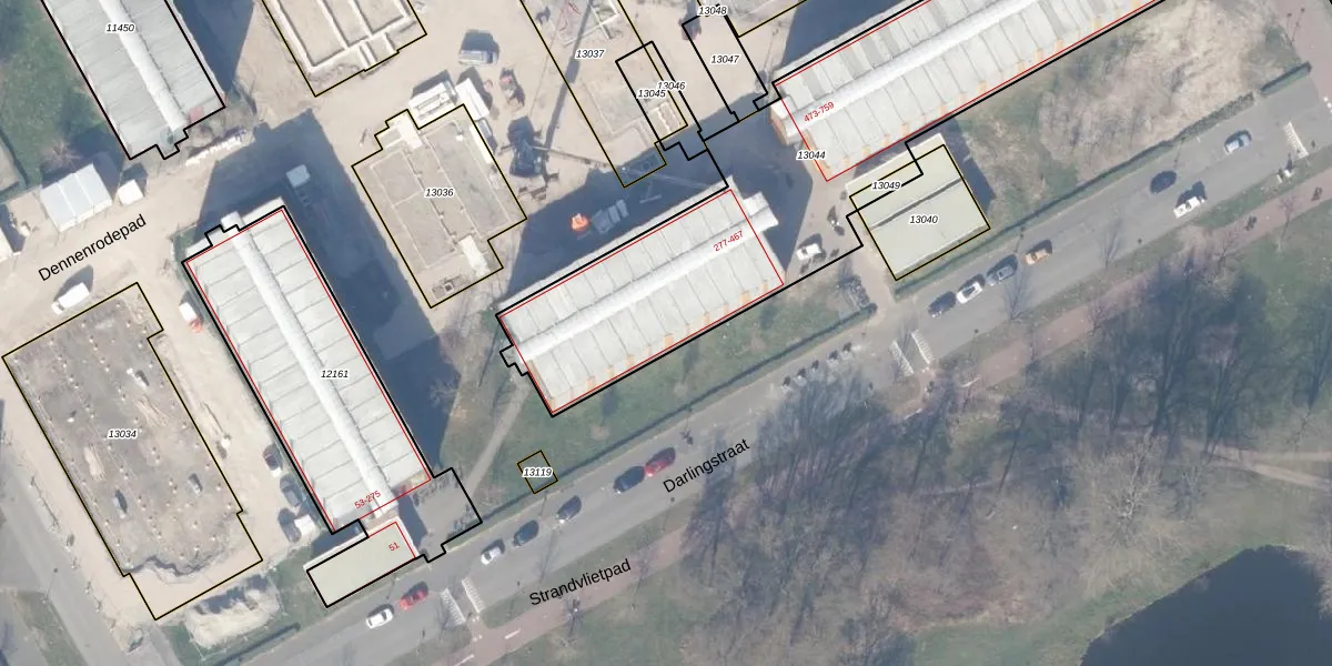 Het perceel waarop Darlingstraat 349 staat heeft een oppervlakte van 2143 m². Dit is een zeer groot perceel. De perceeloppervlakte wordt geregistreerd door het Kadaster. Gedetailleerde informatie over de maten van dit perceel kunt u vinden in het rapport Kadastrale kaart met maatvoering van Darlingstraat 349.