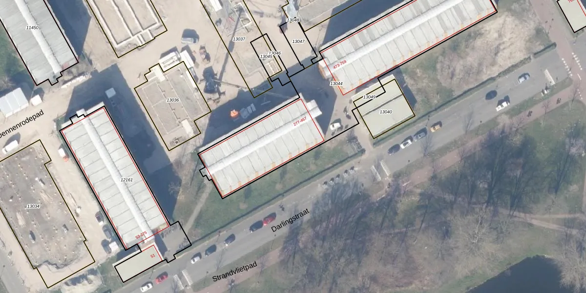 Het perceel waarop Darlingstraat 385 staat heeft een oppervlakte van 2143 m². Dit is een zeer groot perceel. De perceeloppervlakte wordt geregistreerd door het Kadaster. Gedetailleerde informatie over de maten van dit perceel kunt u vinden in het rapport Kadastrale kaart met maatvoering van Darlingstraat 385.