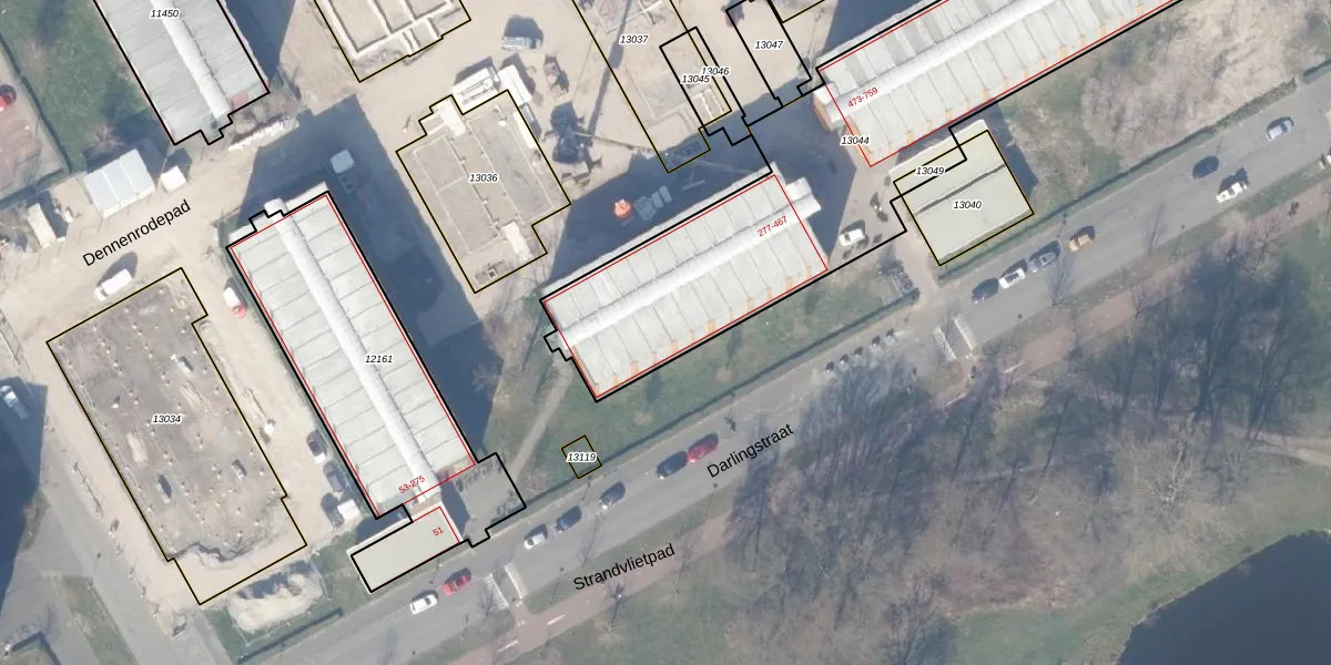 Het perceel waarop Darlingstraat 405 staat heeft een oppervlakte van 2143 m². Dit is een zeer groot perceel. De perceeloppervlakte wordt geregistreerd door het Kadaster. Gedetailleerde informatie over de maten van dit perceel kunt u vinden in het rapport Kadastrale kaart met maatvoering van Darlingstraat 405.