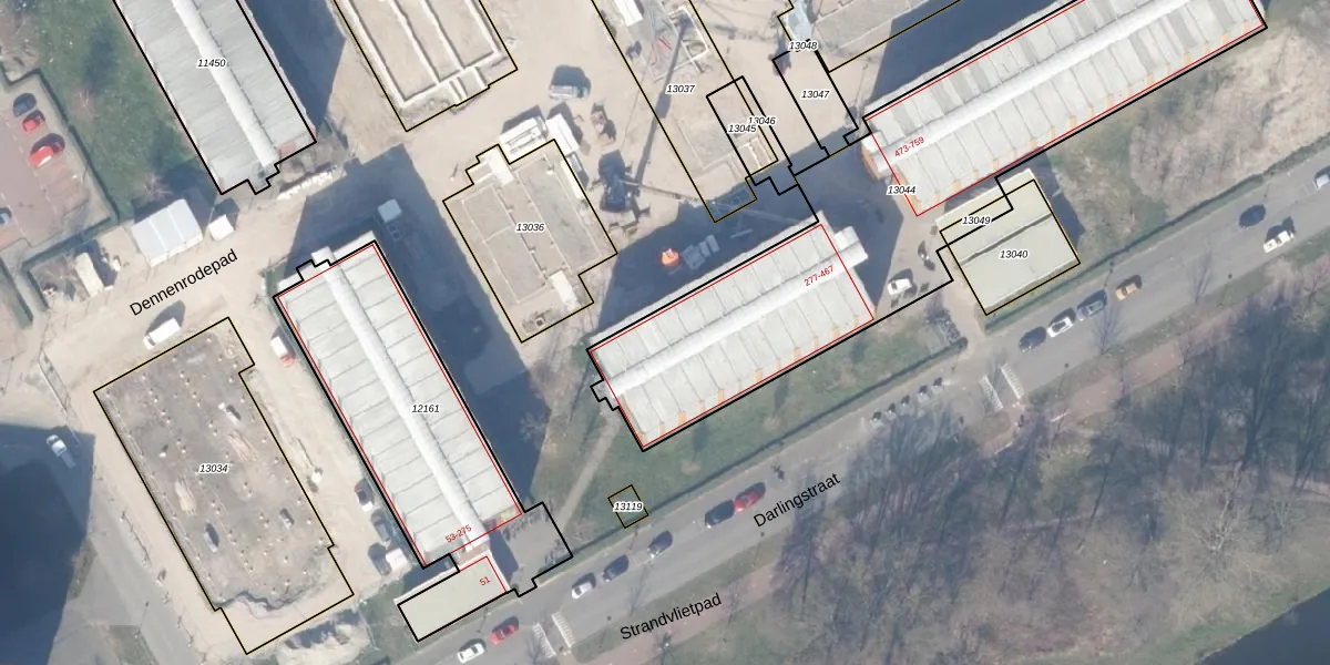 Het perceel waarop Darlingstraat 407 staat heeft een oppervlakte van 2143 m². Dit is een zeer groot perceel. De perceeloppervlakte wordt geregistreerd door het Kadaster. Gedetailleerde informatie over de maten van dit perceel kunt u vinden in het rapport Kadastrale kaart met maatvoering van Darlingstraat 407.