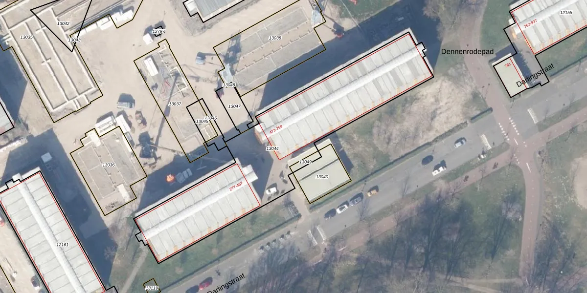 Het perceel waarop Darlingstraat 483 staat heeft een oppervlakte van 2143 m². Dit is een zeer groot perceel. De perceeloppervlakte wordt geregistreerd door het Kadaster. Gedetailleerde informatie over de maten van dit perceel kunt u vinden in het rapport Kadastrale kaart met maatvoering van Darlingstraat 483.