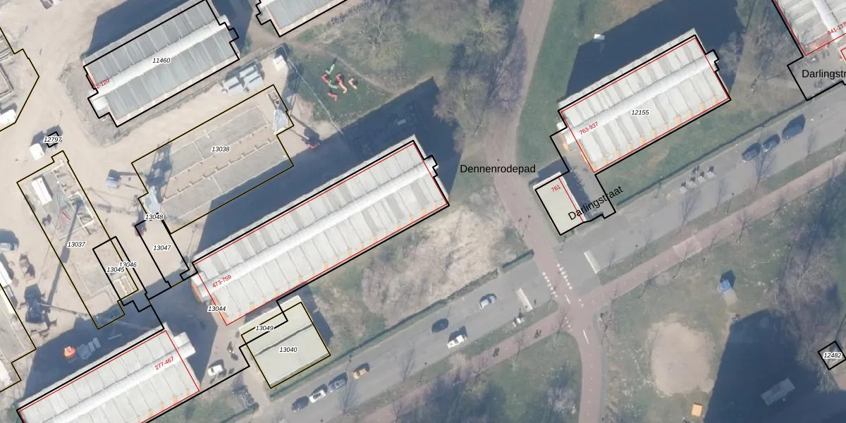 Het perceel waarop Darlingstraat 543 staat heeft een oppervlakte van 2143 m². Dit is een zeer groot perceel. De perceeloppervlakte wordt geregistreerd door het Kadaster. Gedetailleerde informatie over de maten van dit perceel kunt u vinden in het rapport Kadastrale kaart met maatvoering van Darlingstraat 543.