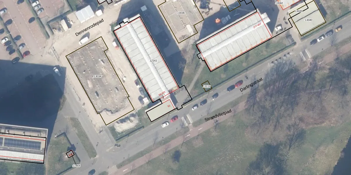Het perceel waarop Darlingstraat 55 staat heeft een oppervlakte van 1040 m². Dit is een zeer groot perceel. De perceeloppervlakte wordt geregistreerd door het Kadaster. Gedetailleerde informatie over de maten van dit perceel kunt u vinden in het rapport Kadastrale kaart met maatvoering van Darlingstraat 55.
