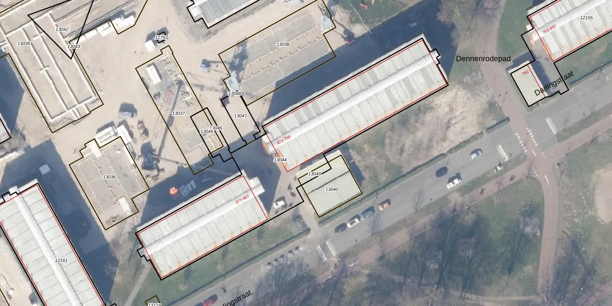 Het perceel waarop Darlingstraat 555 staat heeft een oppervlakte van 2143 m². Dit is een zeer groot perceel. De perceeloppervlakte wordt geregistreerd door het Kadaster. Gedetailleerde informatie over de maten van dit perceel kunt u vinden in het rapport Kadastrale kaart met maatvoering van Darlingstraat 555.