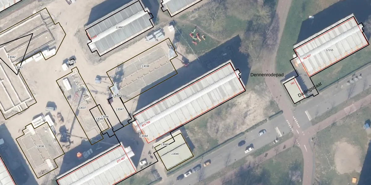 Het perceel waarop Darlingstraat 585 staat heeft een oppervlakte van 2143 m². Dit is een zeer groot perceel. De perceeloppervlakte wordt geregistreerd door het Kadaster. Gedetailleerde informatie over de maten van dit perceel kunt u vinden in het rapport Kadastrale kaart met maatvoering van Darlingstraat 585.