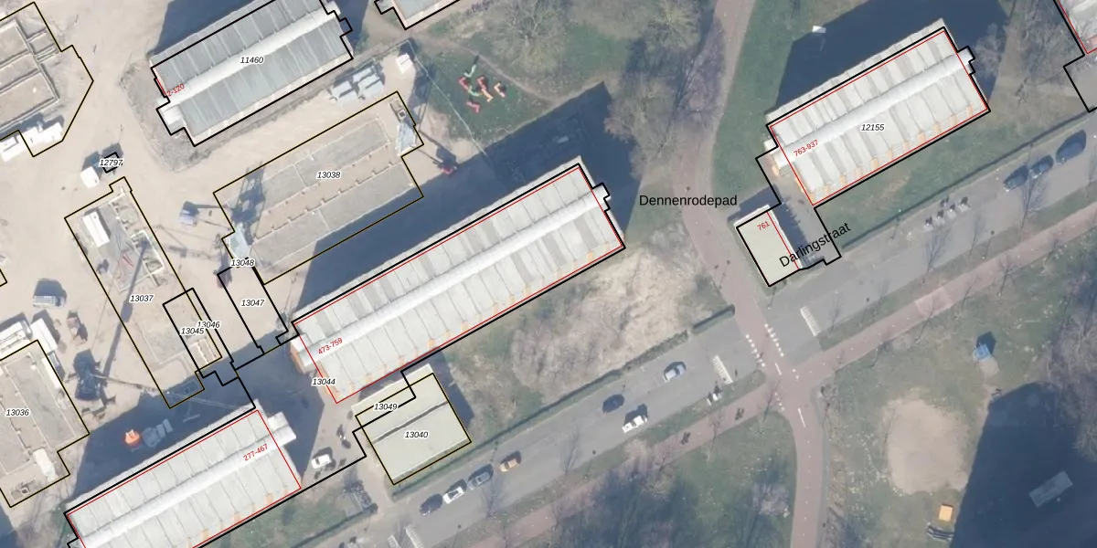 Het perceel waarop Darlingstraat 599 staat heeft een oppervlakte van 2143 m². Dit is een zeer groot perceel. De perceeloppervlakte wordt geregistreerd door het Kadaster. Gedetailleerde informatie over de maten van dit perceel kunt u vinden in het rapport Kadastrale kaart met maatvoering van Darlingstraat 599.