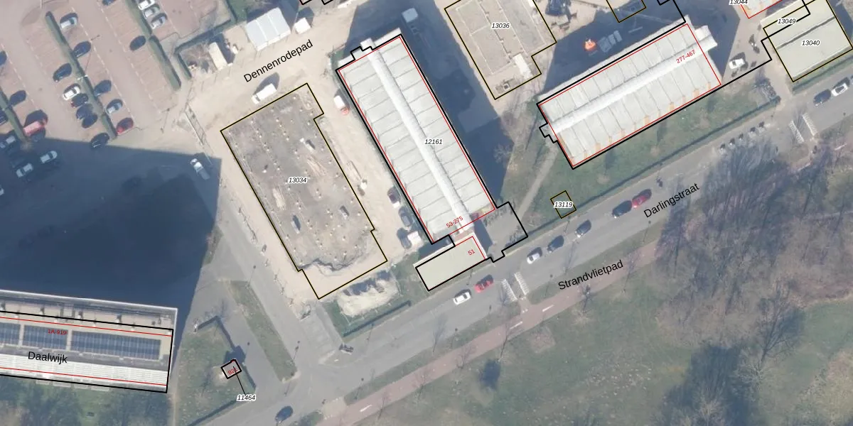 Het perceel waarop Darlingstraat 61 staat heeft een oppervlakte van 1040 m². Dit is een zeer groot perceel. De perceeloppervlakte wordt geregistreerd door het Kadaster. Gedetailleerde informatie over de maten van dit perceel kunt u vinden in het rapport Kadastrale kaart met maatvoering van Darlingstraat 61.
