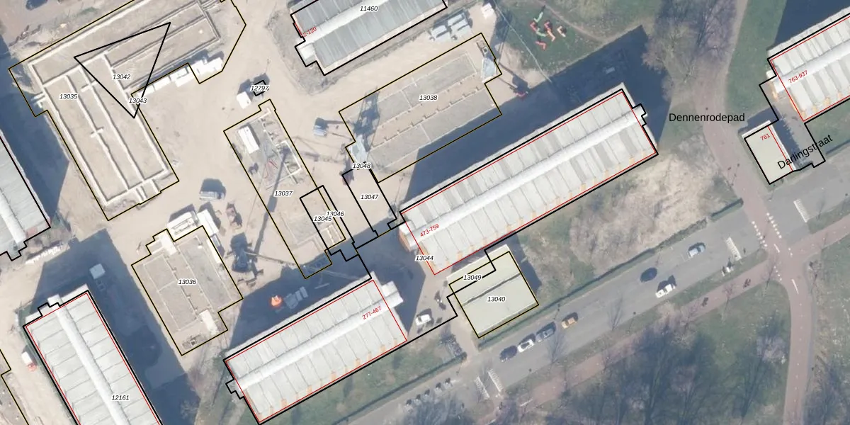 Het perceel waarop Darlingstraat 625 staat heeft een oppervlakte van 2143 m². Dit is een zeer groot perceel. De perceeloppervlakte wordt geregistreerd door het Kadaster. Gedetailleerde informatie over de maten van dit perceel kunt u vinden in het rapport Kadastrale kaart met maatvoering van Darlingstraat 625.