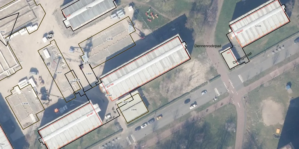 Het perceel waarop Darlingstraat 727 staat heeft een oppervlakte van 2143 m². Dit is een zeer groot perceel. De perceeloppervlakte wordt geregistreerd door het Kadaster. Gedetailleerde informatie over de maten van dit perceel kunt u vinden in het rapport Kadastrale kaart met maatvoering van Darlingstraat 727.