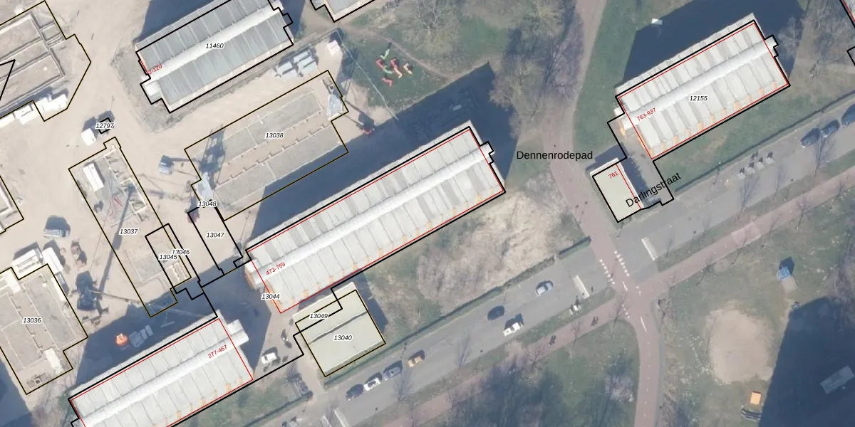 Het perceel waarop Darlingstraat 739 staat heeft een oppervlakte van 2143 m². Dit is een zeer groot perceel. De perceeloppervlakte wordt geregistreerd door het Kadaster. Gedetailleerde informatie over de maten van dit perceel kunt u vinden in het rapport Kadastrale kaart met maatvoering van Darlingstraat 739.