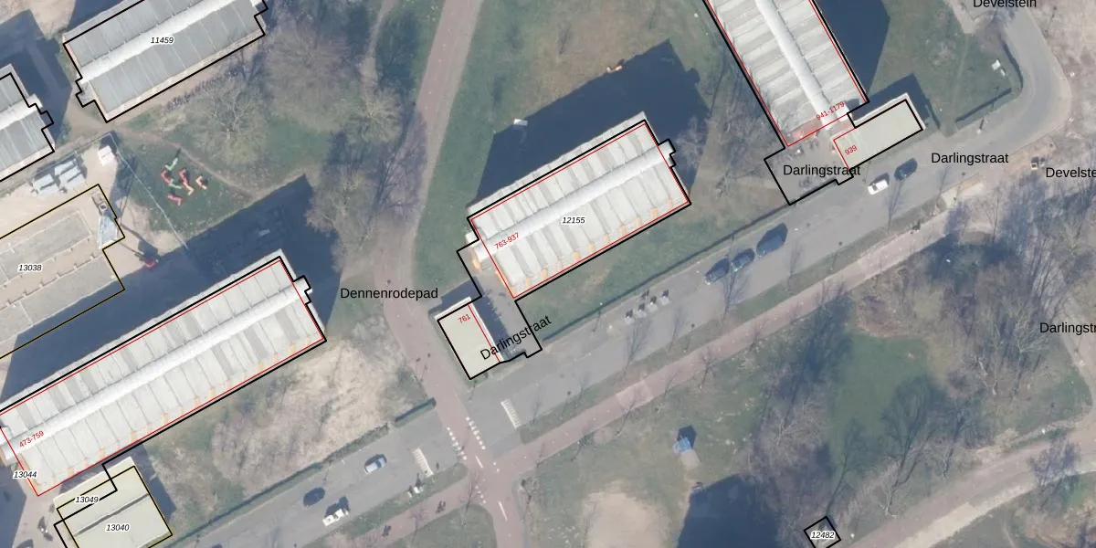 Het perceel waarop Darlingstraat 773 staat heeft een oppervlakte van 875 m². Dit is een groot perceel. De perceeloppervlakte wordt geregistreerd door het Kadaster. Gedetailleerde informatie over de maten van dit perceel kunt u vinden in het rapport Kadastrale kaart met maatvoering van Darlingstraat 773.