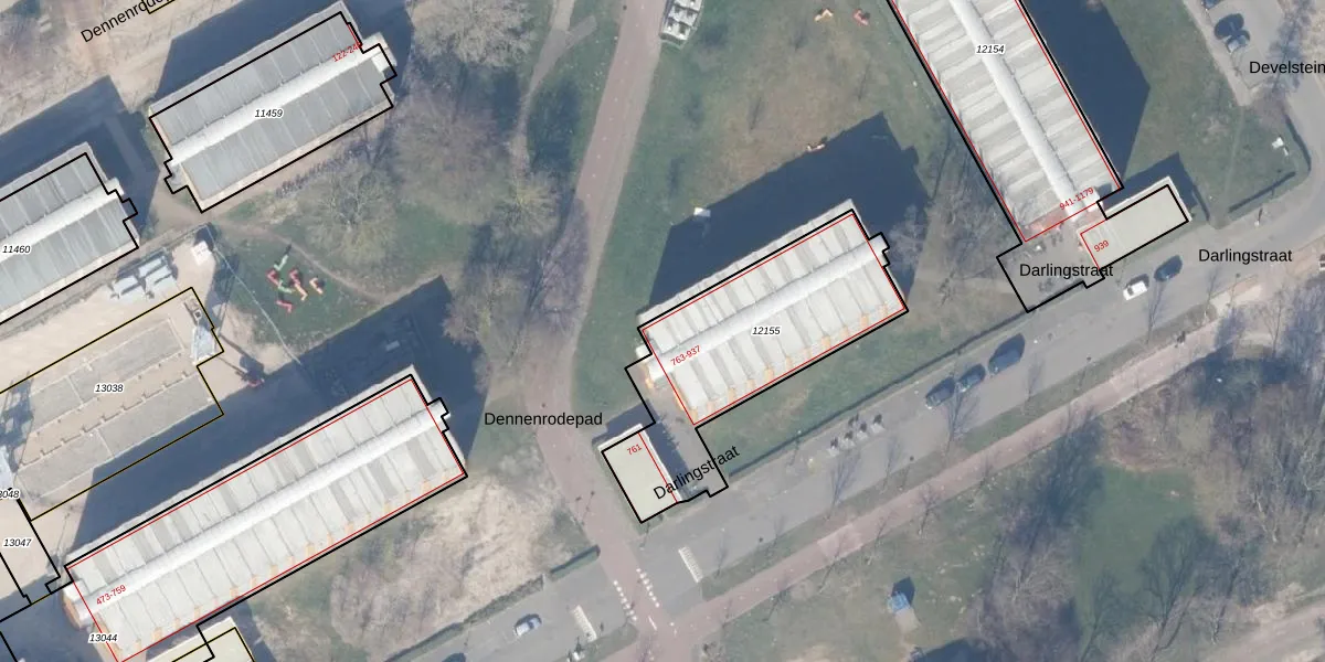 Het perceel waarop Darlingstraat 807 staat heeft een oppervlakte van 875 m². Dit is een groot perceel. De perceeloppervlakte wordt geregistreerd door het Kadaster. Gedetailleerde informatie over de maten van dit perceel kunt u vinden in het rapport Kadastrale kaart met maatvoering van Darlingstraat 807.