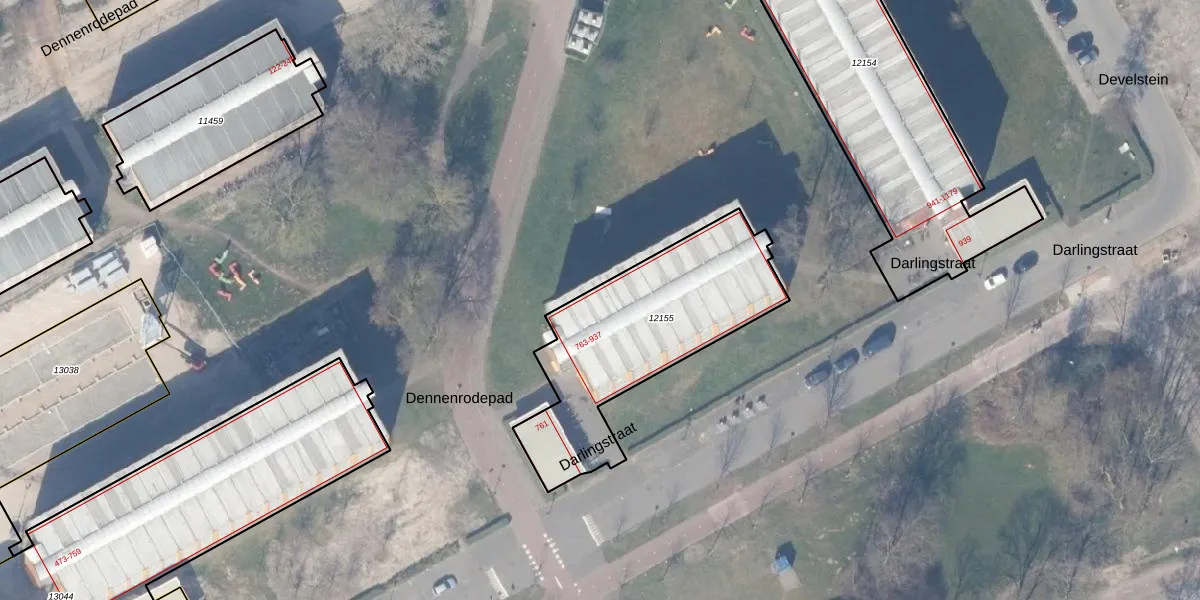 Het perceel waarop Darlingstraat 815 staat heeft een oppervlakte van 875 m². Dit is een groot perceel. De perceeloppervlakte wordt geregistreerd door het Kadaster. Gedetailleerde informatie over de maten van dit perceel kunt u vinden in het rapport Kadastrale kaart met maatvoering van Darlingstraat 815.