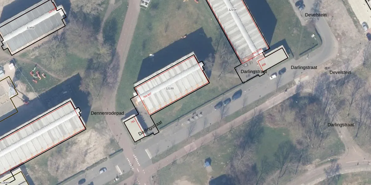 Het perceel waarop Darlingstraat 837 staat heeft een oppervlakte van 875 m². Dit is een groot perceel. De perceeloppervlakte wordt geregistreerd door het Kadaster. Gedetailleerde informatie over de maten van dit perceel kunt u vinden in het rapport Kadastrale kaart met maatvoering van Darlingstraat 837.