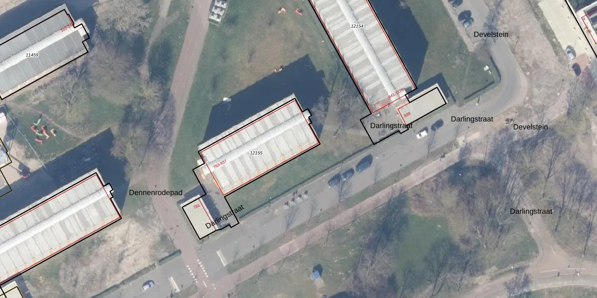 Het perceel waarop Darlingstraat 845 staat heeft een oppervlakte van 875 m². Dit is een groot perceel. De perceeloppervlakte wordt geregistreerd door het Kadaster. Gedetailleerde informatie over de maten van dit perceel kunt u vinden in het rapport Kadastrale kaart met maatvoering van Darlingstraat 845.