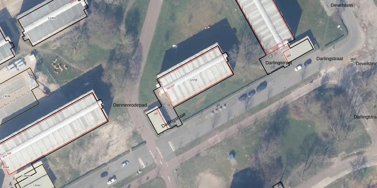 Het perceel waarop Darlingstraat 865 staat heeft een oppervlakte van 875 m². Dit is een groot perceel. De perceeloppervlakte wordt geregistreerd door het Kadaster. Gedetailleerde informatie over de maten van dit perceel kunt u vinden in het rapport Kadastrale kaart met maatvoering van Darlingstraat 865.