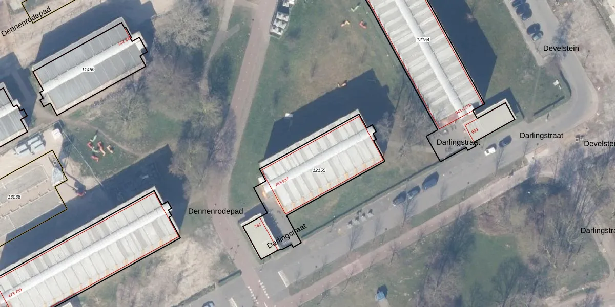 Het perceel waarop Darlingstraat 911 staat heeft een oppervlakte van 875 m². Dit is een groot perceel. De perceeloppervlakte wordt geregistreerd door het Kadaster. Gedetailleerde informatie over de maten van dit perceel kunt u vinden in het rapport Kadastrale kaart met maatvoering van Darlingstraat 911.