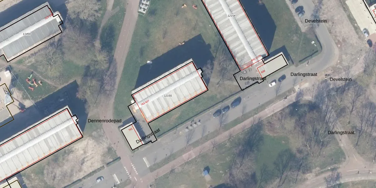 Het perceel waarop Darlingstraat 929 staat heeft een oppervlakte van 875 m². Dit is een groot perceel. De perceeloppervlakte wordt geregistreerd door het Kadaster. Gedetailleerde informatie over de maten van dit perceel kunt u vinden in het rapport Kadastrale kaart met maatvoering van Darlingstraat 929.