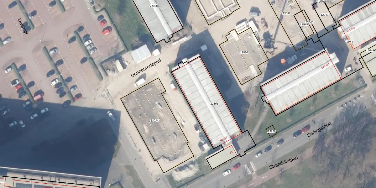 Het perceel waarop Darlingstraat 93 staat heeft een oppervlakte van 1040 m². Dit is een zeer groot perceel. De perceeloppervlakte wordt geregistreerd door het Kadaster. Gedetailleerde informatie over de maten van dit perceel kunt u vinden in het rapport Kadastrale kaart met maatvoering van Darlingstraat 93.