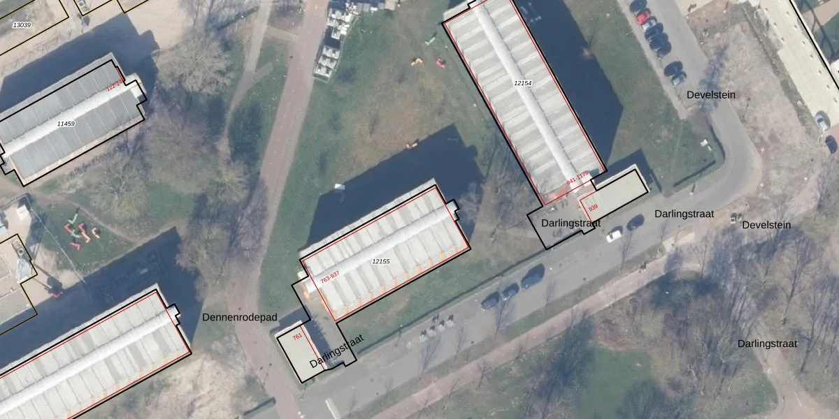 Het perceel waarop Darlingstraat 931 staat heeft een oppervlakte van 875 m². Dit is een groot perceel. De perceeloppervlakte wordt geregistreerd door het Kadaster. Gedetailleerde informatie over de maten van dit perceel kunt u vinden in het rapport Kadastrale kaart met maatvoering van Darlingstraat 931.