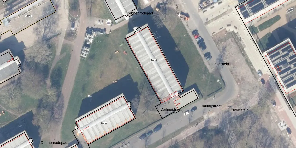 Het perceel waarop Darlingstraat 965 staat heeft een oppervlakte van 1110 m². Dit is een zeer groot perceel. De perceeloppervlakte wordt geregistreerd door het Kadaster. Gedetailleerde informatie over de maten van dit perceel kunt u vinden in het rapport Kadastrale kaart met maatvoering van Darlingstraat 965.