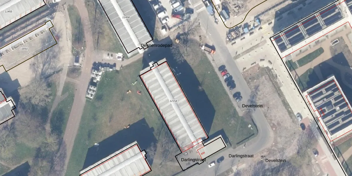 Het perceel waarop Darlingstraat 979 staat heeft een oppervlakte van 1110 m². Dit is een zeer groot perceel. De perceeloppervlakte wordt geregistreerd door het Kadaster. Gedetailleerde informatie over de maten van dit perceel kunt u vinden in het rapport Kadastrale kaart met maatvoering van Darlingstraat 979.