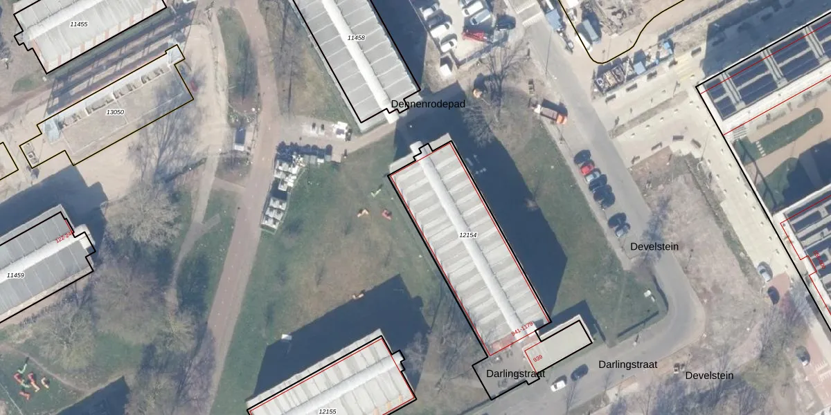 Het perceel waarop Darlingstraat 985 staat heeft een oppervlakte van 1110 m². Dit is een zeer groot perceel. De perceeloppervlakte wordt geregistreerd door het Kadaster. Gedetailleerde informatie over de maten van dit perceel kunt u vinden in het rapport Kadastrale kaart met maatvoering van Darlingstraat 985.