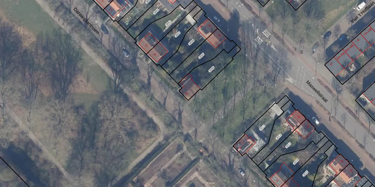 Het perceel waarop Darwinplantsoen 13 staat heeft een oppervlakte van 327 m². Dit is een groot perceel. De perceeloppervlakte wordt geregistreerd door het Kadaster. Gedetailleerde informatie over de maten van dit perceel kunt u vinden in het rapport Kadastrale kaart met maatvoering van Darwinplantsoen 13.