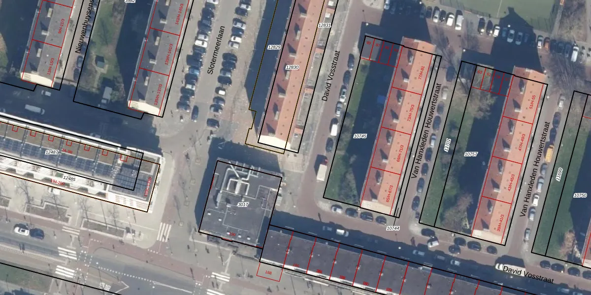 David Vosstraat 53 is gelegen op kadastraal perceel STN02D12831. Deze kadastrale aanduiding is uniek en wordt gebruikt door het Kadaster om eigendomsrechten en andere zakelijke rechten vast te leggen. Het perceel maakt onderdeel uit van de kadastrale gemeente Sloten Noord-Holland.