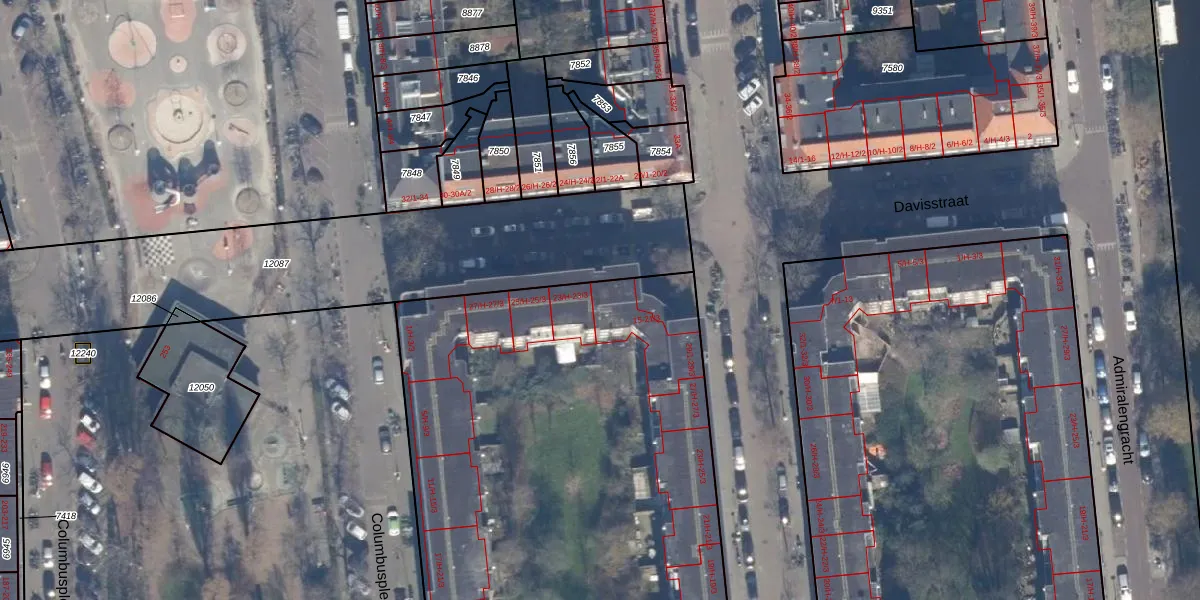 Het perceel waarop Davisstraat 21-3 staat heeft een oppervlakte van 8730 m². Dit is een zeer groot perceel. De perceeloppervlakte wordt geregistreerd door het Kadaster. Gedetailleerde informatie over de maten van dit perceel kunt u vinden in het rapport Kadastrale kaart met maatvoering van Davisstraat 21-3.