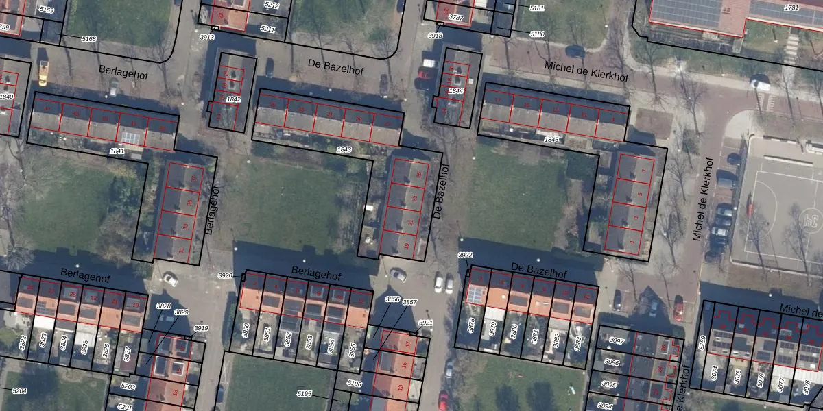 Het perceel waarop De Bazelhof 23 staat heeft een oppervlakte van 859 m². Dit is een groot perceel. De perceeloppervlakte wordt geregistreerd door het Kadaster. Gedetailleerde informatie over de maten van dit perceel kunt u vinden in het rapport Kadastrale kaart met maatvoering van De Bazelhof 23.
