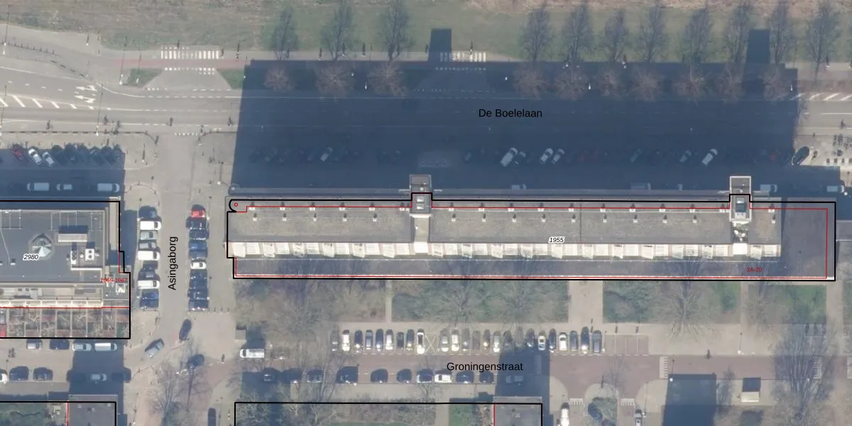 Het perceel waarop De Boelelaan 1011 staat heeft een oppervlakte van 2638 m². Dit is een zeer groot perceel. De perceeloppervlakte wordt geregistreerd door het Kadaster. Gedetailleerde informatie over de maten van dit perceel kunt u vinden in het rapport Kadastrale kaart met maatvoering van De Boelelaan 1011.
