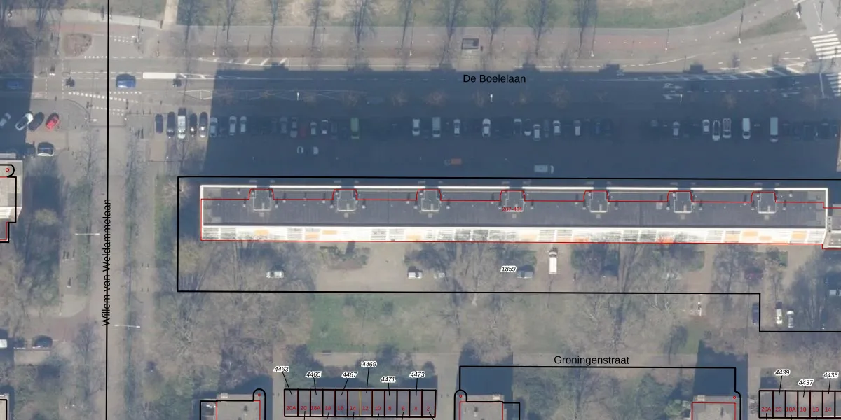 Het perceel waarop De Boelelaan 343 staat heeft een oppervlakte van 4935 m². Dit is een zeer groot perceel. De perceeloppervlakte wordt geregistreerd door het Kadaster. Gedetailleerde informatie over de maten van dit perceel kunt u vinden in het rapport Kadastrale kaart met maatvoering van De Boelelaan 343.