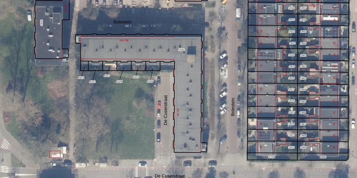 Het perceel waarop De Cuserstraat 96 staat heeft een oppervlakte van 1856 m². Dit is een zeer groot perceel. De perceeloppervlakte wordt geregistreerd door het Kadaster. Gedetailleerde informatie over de maten van dit perceel kunt u vinden in het rapport Kadastrale kaart met maatvoering van De Cuserstraat 96.