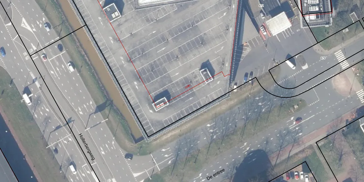 Het perceel waarop De entree 1 staat heeft een oppervlakte van 2,8 ha. Dit is een zeer groot perceel. De perceeloppervlakte wordt geregistreerd door het Kadaster. Gedetailleerde informatie over de maten van dit perceel kunt u vinden in het rapport Kadastrale kaart met maatvoering van De entree 1.