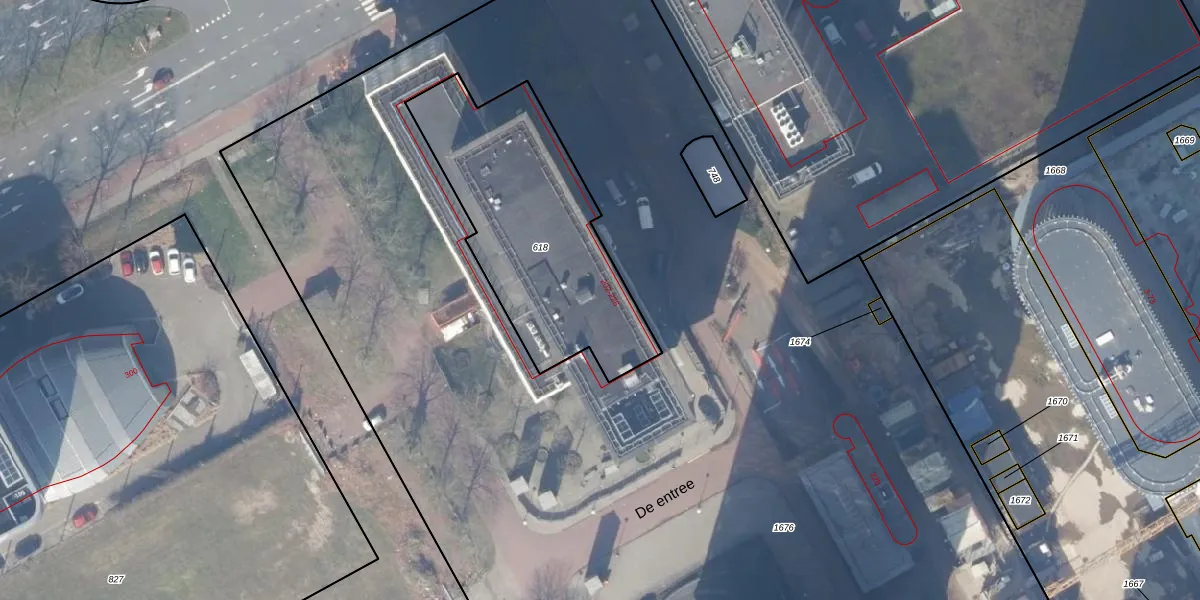 Het perceel waarop De entree 210 staat heeft een oppervlakte van 1013 m². Dit is een zeer groot perceel. De perceeloppervlakte wordt geregistreerd door het Kadaster. Gedetailleerde informatie over de maten van dit perceel kunt u vinden in het rapport Kadastrale kaart met maatvoering van De entree 210.