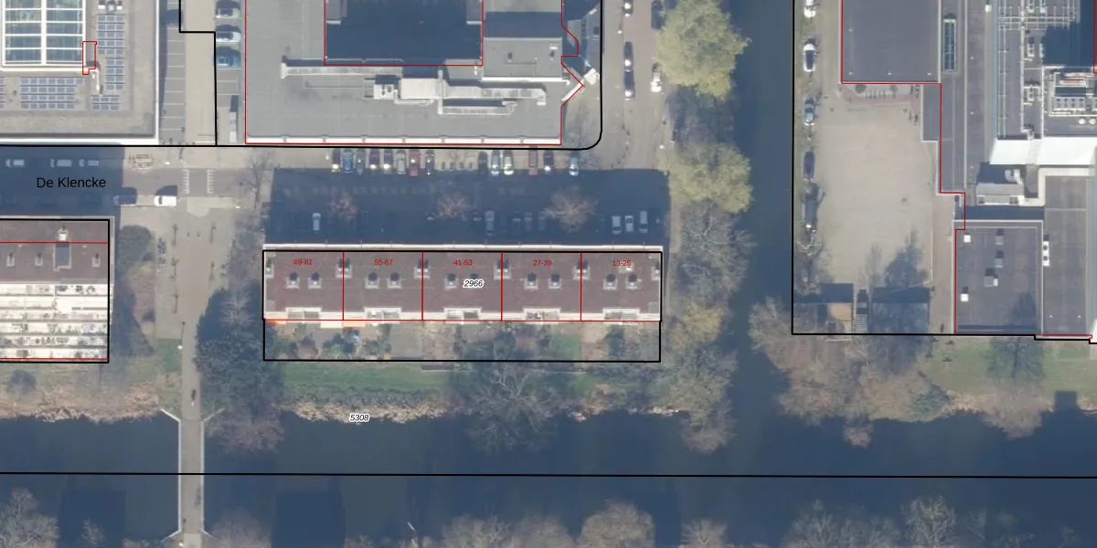 Het perceel waarop De Klencke 27 staat heeft een oppervlakte van 1446 m². Dit is een zeer groot perceel. De perceeloppervlakte wordt geregistreerd door het Kadaster. Gedetailleerde informatie over de maten van dit perceel kunt u vinden in het rapport Kadastrale kaart met maatvoering van De Klencke 27.