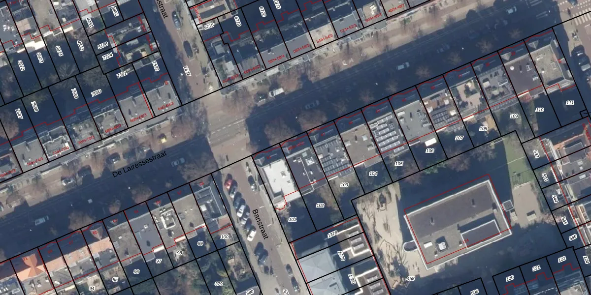 Het perceel waarop De Lairessestraat 49-2 staat heeft een oppervlakte van 321 m². Dit is een groot perceel. De perceeloppervlakte wordt geregistreerd door het Kadaster. Gedetailleerde informatie over de maten van dit perceel kunt u vinden in het rapport Kadastrale kaart met maatvoering van De Lairessestraat 49-2.