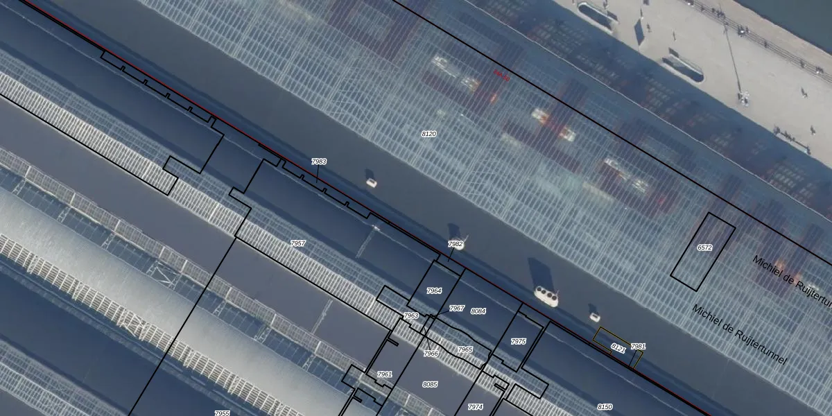 Het perceel waarop De Ruijterkade 24-A staat heeft een oppervlakte van 1,1 ha. Dit is een zeer groot perceel. De perceeloppervlakte wordt geregistreerd door het Kadaster. Gedetailleerde informatie over de maten van dit perceel kunt u vinden in het rapport Kadastrale kaart met maatvoering van De Ruijterkade 24-A.