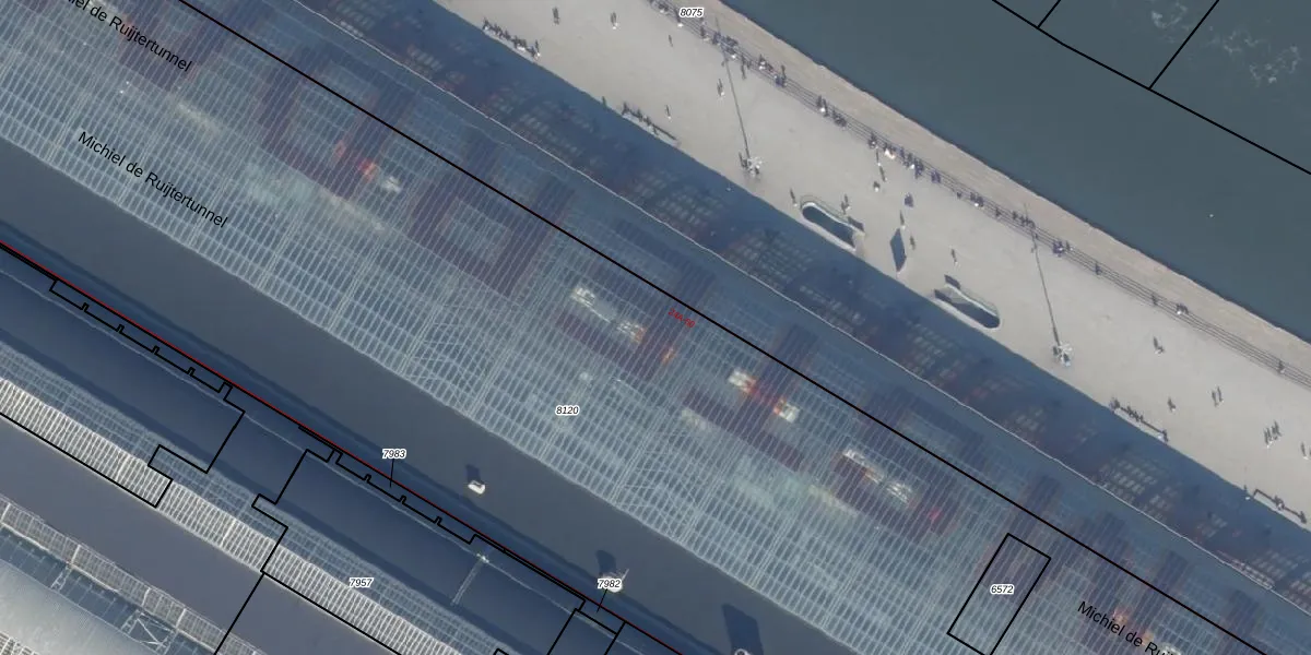 Het perceel waarop De Ruijterkade 36-A staat heeft een oppervlakte van 1,1 ha. Dit is een zeer groot perceel. De perceeloppervlakte wordt geregistreerd door het Kadaster. Gedetailleerde informatie over de maten van dit perceel kunt u vinden in het rapport Kadastrale kaart met maatvoering van De Ruijterkade 36-A.