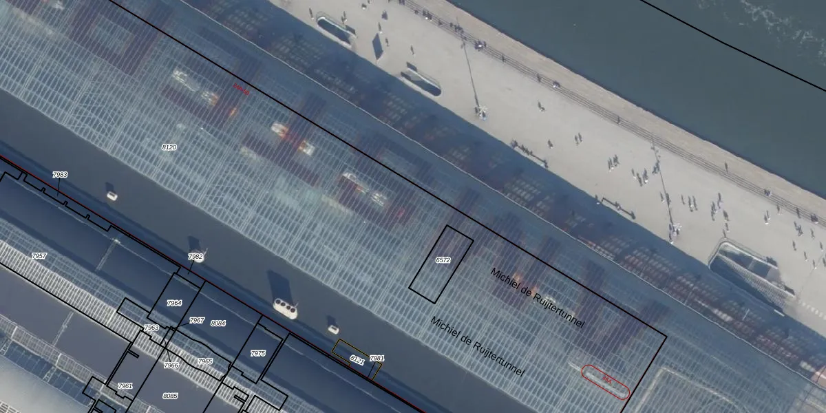 Het perceel waarop De Ruijterkade 40-A staat heeft een oppervlakte van 1,1 ha. Dit is een zeer groot perceel. De perceeloppervlakte wordt geregistreerd door het Kadaster. Gedetailleerde informatie over de maten van dit perceel kunt u vinden in het rapport Kadastrale kaart met maatvoering van De Ruijterkade 40-A.