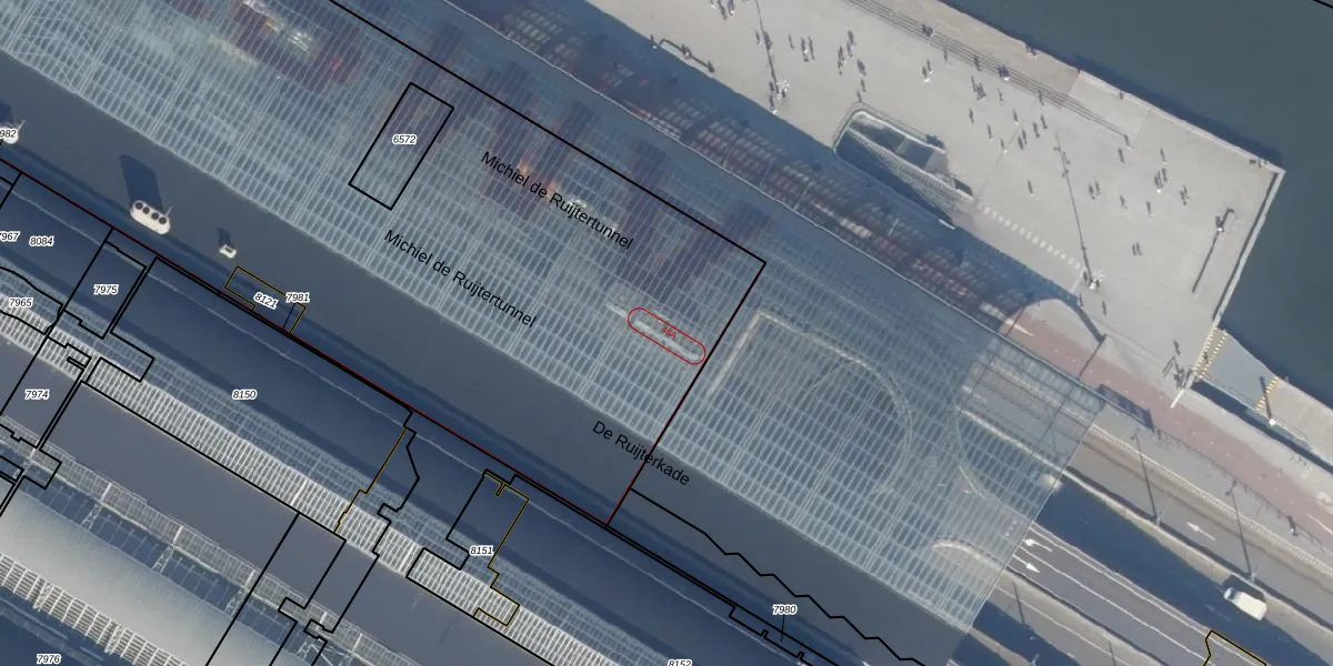 De Ruijterkade 46-A is gelegen op kadastraal perceel ASD04F8120. Deze kadastrale aanduiding is uniek en wordt gebruikt door het Kadaster om eigendomsrechten en andere zakelijke rechten vast te leggen. Het perceel maakt onderdeel uit van de kadastrale gemeente Amsterdam.