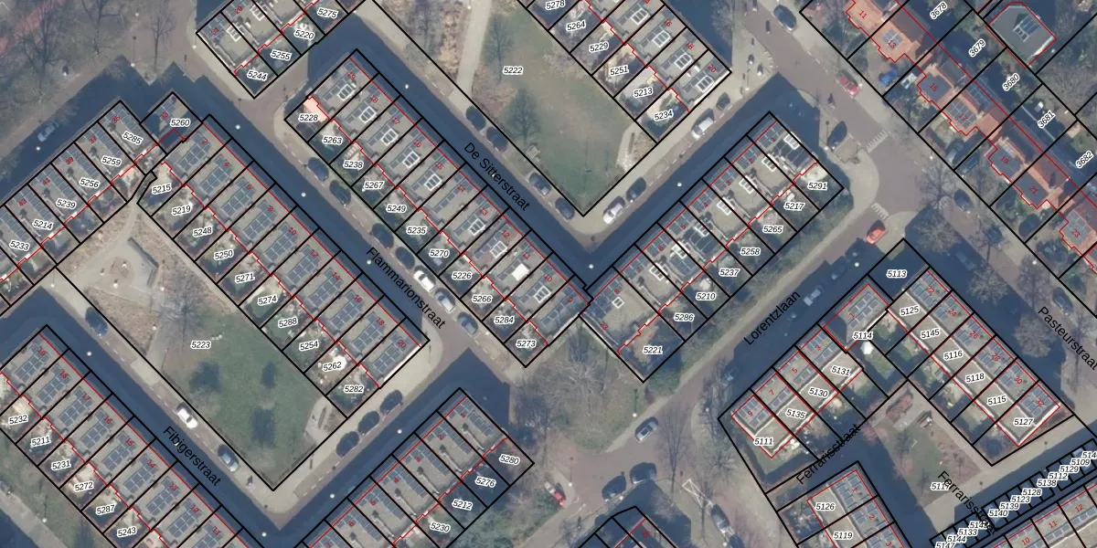 Gebruik de zoekbalk of klik op een perceel voor informatie over de adressen binnen dit perceel.