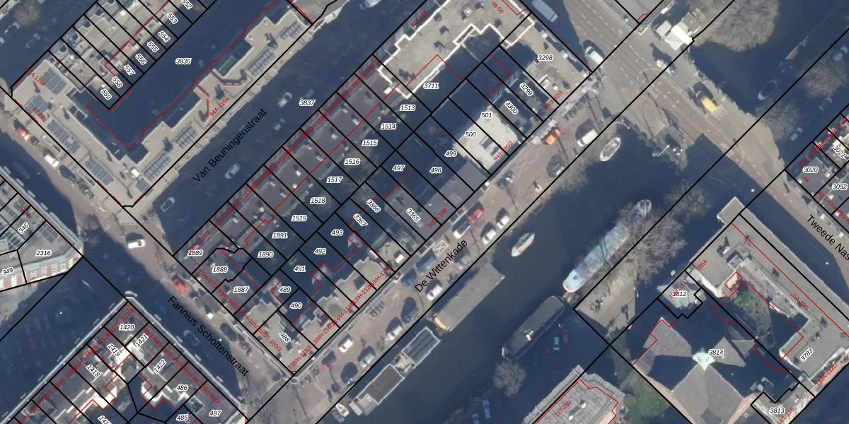 De Wittenkade 106-B is gelegen op kadastraal perceel ASD21Y3365. Deze kadastrale aanduiding is uniek en wordt gebruikt door het Kadaster om eigendomsrechten en andere zakelijke rechten vast te leggen. Het perceel maakt onderdeel uit van de kadastrale gemeente Amsterdam.