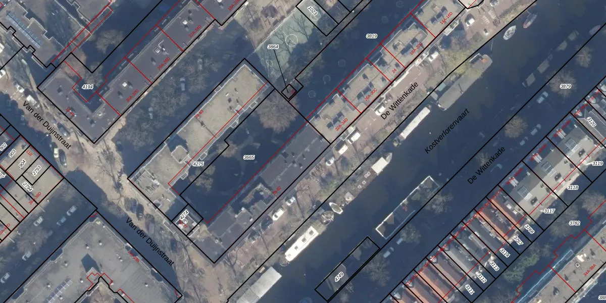 Het perceel waarop De Wittenkade 44 staat heeft een oppervlakte van 1292 m². Dit is een zeer groot perceel. De perceeloppervlakte wordt geregistreerd door het Kadaster. Gedetailleerde informatie over de maten van dit perceel kunt u vinden in het rapport Kadastrale kaart met maatvoering van De Wittenkade 44.